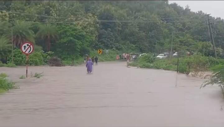 జగిత్యాల నుండి ధర్మపురికి రాకపోకలు బంద్ జగిత్యాల జిల్లా నేరెళ్ల గుట్ట వద్ద వాగు పొంగి రాకపోకలు నిలిచిపోయాయి దీంతో పోలీసు అధికారులు అక్కడికి చేరుకొని భారీగా భార్కెడ్లు ఏర్పాటు చేశారు ఎగువన కురుస్తున్న వర్షాలకి వాగులు వంకలు ఉప్పొంగుతున్నట్లు పోలీస్ అధికారులు తెలిపారు ధర్మపురి నుండి జగిత్యాలకు అత్యవసర సమయంలో వెళ్లాల్సి వస్తే మద్దునూర్ రహదారి గుండా వెళ్లాలని ధర్మపురి సిఐ సూచించారు.