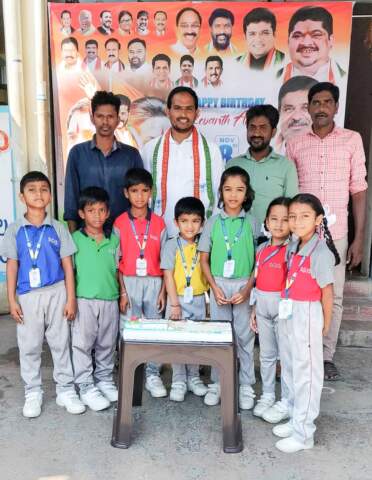 చిన్నారుల మధ్య సీఎం రేవంత్ రెడ్డి జన్మదిన వేడుకలు-తీగలగుట్టపల్లిలో నిర్వహించిన కాంగ్రెస్ నాయకుడు కోలగాని అనిల్
